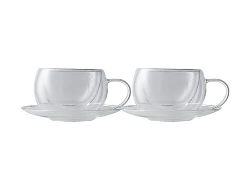 Contemporary and sophisticated, this double walled cup and saucer set from the Blend range is made from durable borosilicate thermal glass. The double wall acts as an insulation to keep your drinks at a steady temperature, whether it be hot or cold. Combine them with the other pieces from our Blend range for a tea and coffee set with a modern edge.